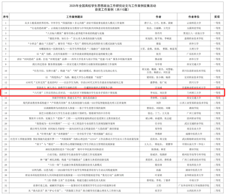 近日,教育部高校思想政治工作队伍培训研修中心(西安交通大学)公布了2025年度高校思想政治工作优秀论文和优秀案例征集活动评选结果,我校材料科学与工程学院辅导员李双辰、刘汉青申报的《“六尺巷”工作法里的心灵对话:一站式社区下抑郁确诊学生宿舍矛盾的干预实践》荣获优秀案例一等奖。