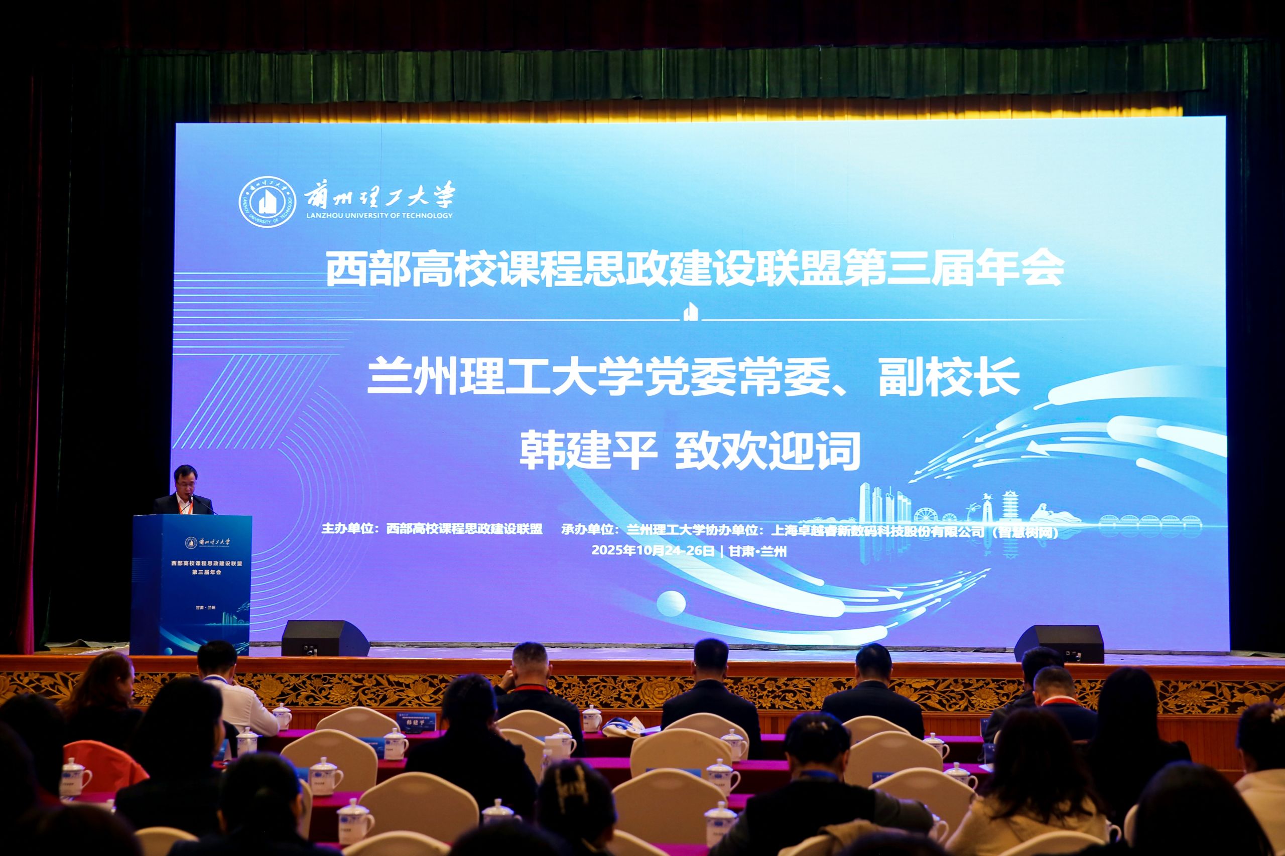 10月25日,西部高校课程思政建设联盟第三届年会在甘肃省兰州市召开。本届年会以“新时代课程思政内涵式发展与西部高校实践创新”为主题,由西部高校课程思政建设联盟主办、兰州理工大学承办。来自西安交通大学、西北工业大学、兰州大学、重庆大学、云南大学、新疆大学、青海大学等西部高校的领导、专家学者及一线教师代表共300余人参会。我校党委常委、副校长韩建平出席会议。